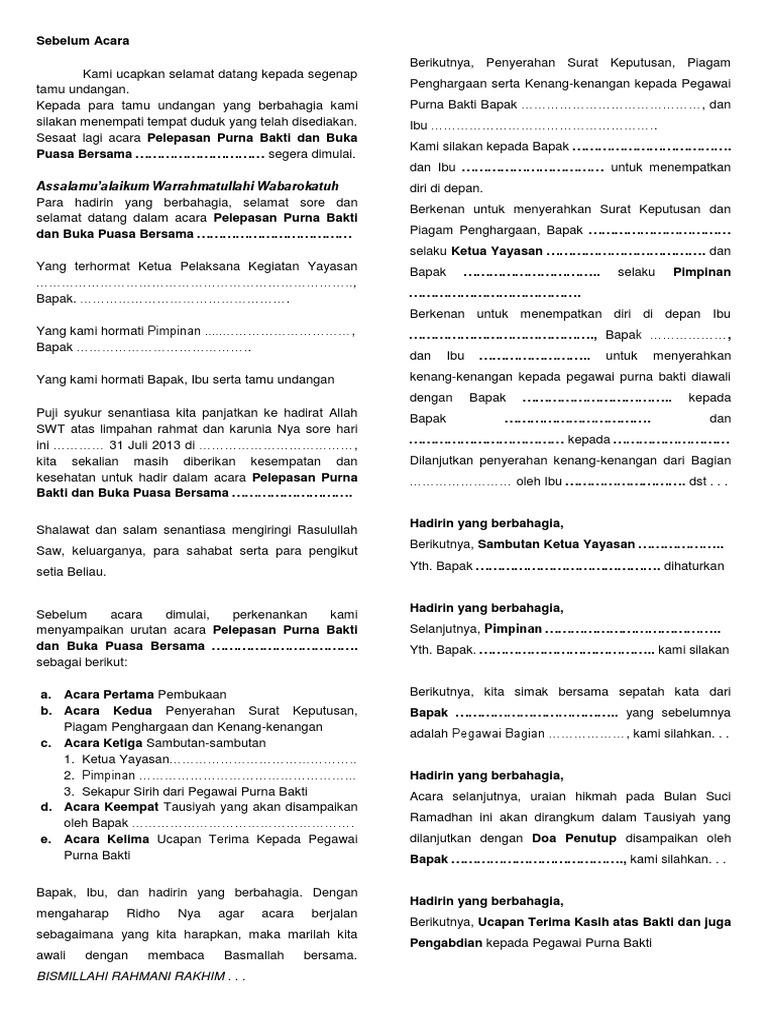 Panduan Mc Pelepasan Pegawai Purna Bhakti Dan Buka Puasa Bersama